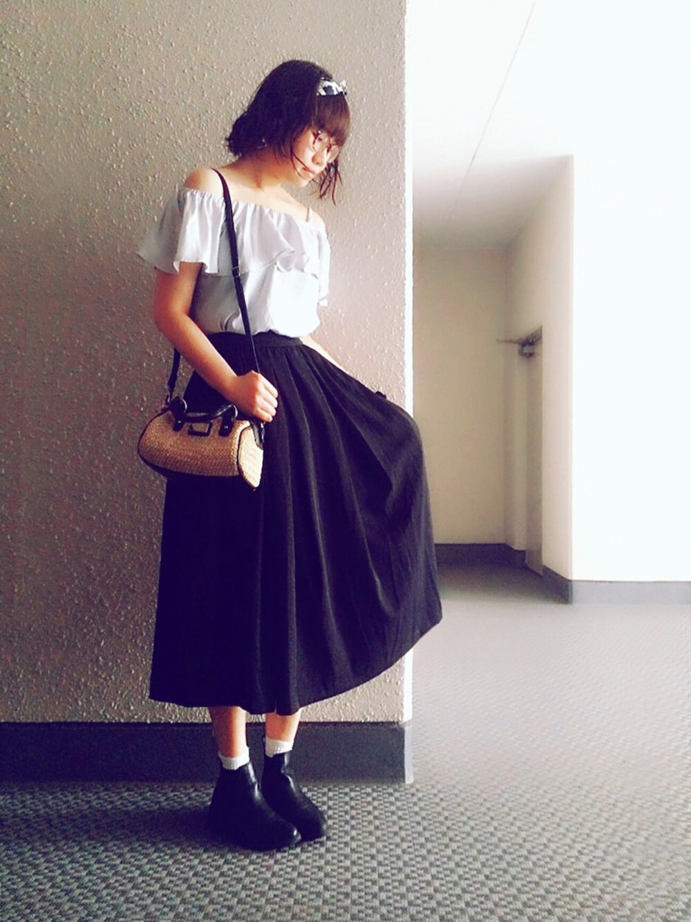まきchamのヘアバンド「【ナイスクラップ】スカーフヘアバン」を使ったコーディネート