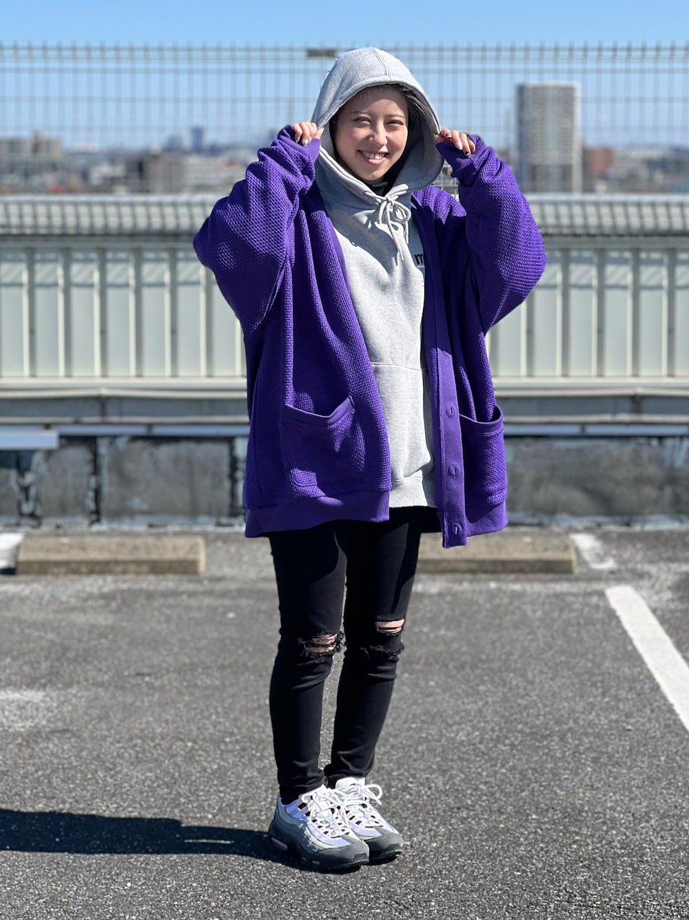 muahmuahのパーカーに紫のカーディガン合わせてみました😊 大きめのサイズ感でゆったりしているので お気に入りです☺️