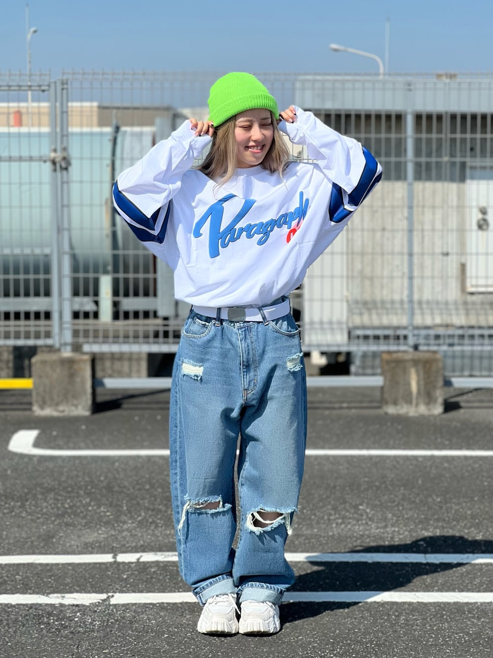 Paragraphの新作ロンTを使ったコーデです☺️ 春っぽいカラーがお気に入りです🐝