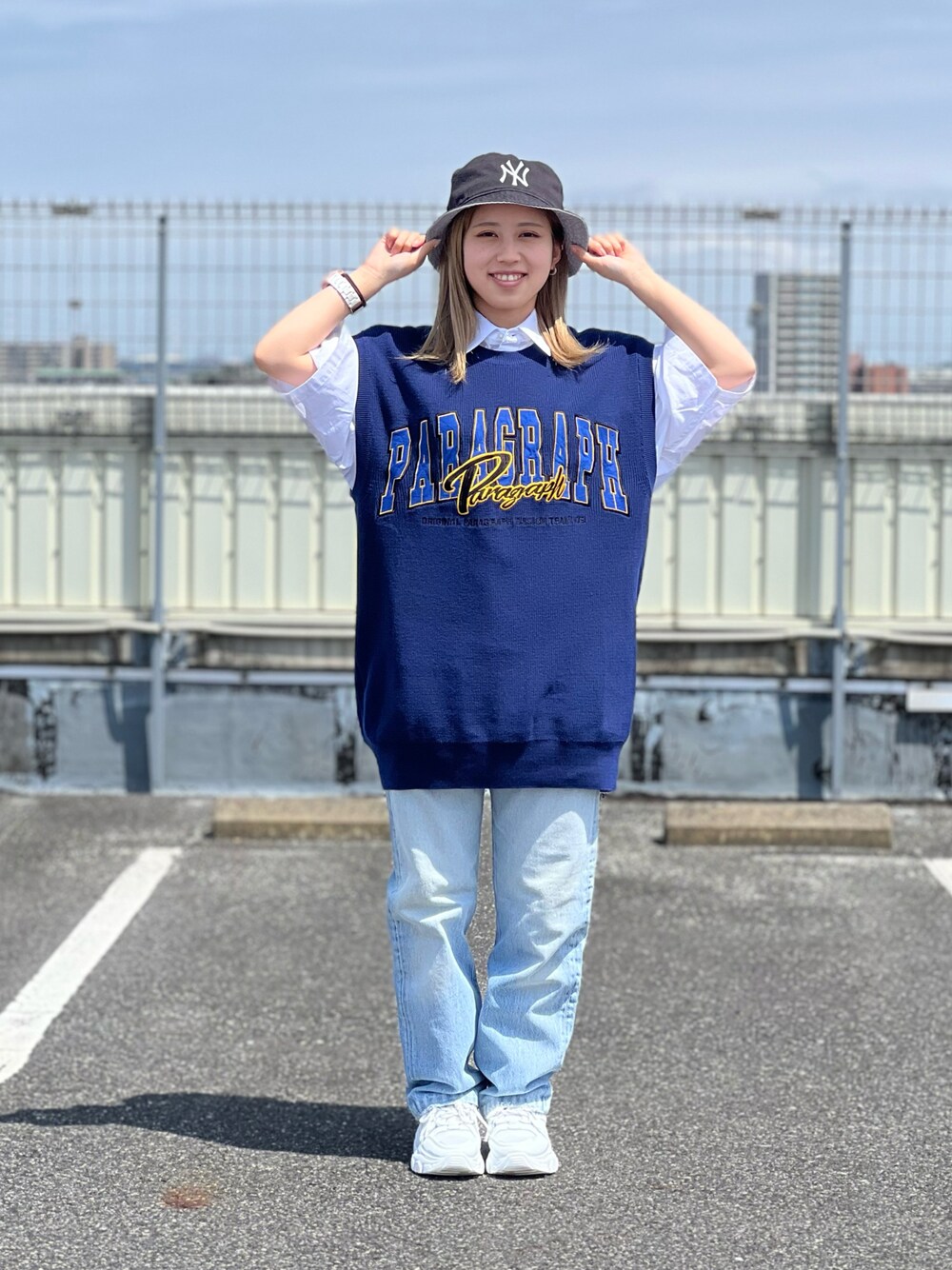 ベストにデニムパンツ合わせてみました☺️ 大きめのサイズ感でゆったり着れます😚
