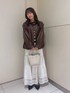 レザーJKコーデ  ̄ ̄ ̄ ̄ ̄ ̄ ̄ ̄ ̄ ̄ ̄ ̄ ̄ ̄ ̄ ̄ ̄ 【アウター】 裾が絞れてバルーンの形になる可愛い春アウターです✨ 柔らかくて軽いので楽に着ていただけます! 【トップス】 伸縮性があるので身体のラインを拾わずに 着ていただけます! レイヤードでインナーを入れても可愛いくなります♪ 【ボトムス】 広がるシルエットなので体型カバーもできます✨ 夏まで使える素材なのでTシャツと合わせても 可愛いです♪ instagram→