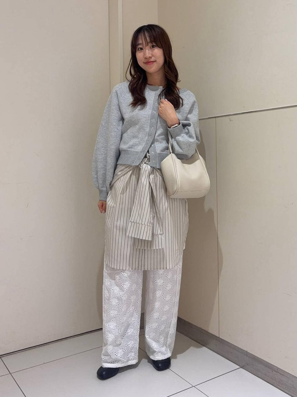 シャツ巻きコーデ👔✨  ̄ ̄ ̄ ̄ ̄ ̄ ̄ ̄ ̄ ̄ ̄ ̄ ̄ ̄ ̄ ̄ ̄ 【トップス】 リバーシブルやオフショルにもしていただけるので 気分で色々な着方ができます♪ 羽織りにもなるのでインナーをキャミソール やTシャツなどのアイテムと合わせるのがおすすめです! 【ボトムス】 春らしい花柄レースのデザインでお洒落に着て いただけます🌼 カーブシルエットなので体型カバーにもおすすめです♪ instagram→