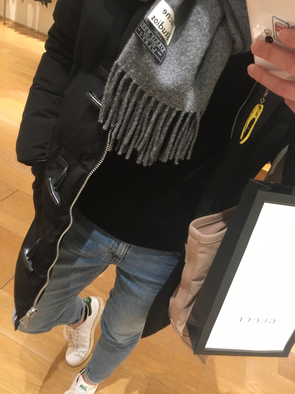 このデニム 一目惚れして即決ꜝꜝꜝ はき心地も最高ꜝꜝꜝ テーパードが好き◡̈⃝︎❤︎ ダウンコートは サイズでかかったな 肩余って変… トップスは黒のベロア 福袋に入ってたやつ⋆︎*