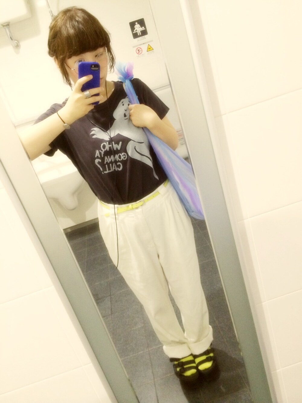 カバンを目立たせたかったのでシンプル目に。 カバンはlagimusimというブランドのエコバッグです。 透けてる素材なので、中にアメアパのバッグを入れてみました 最近新調した丸めがねもかけて、今日はお気に入りのアイテムいっぱいです