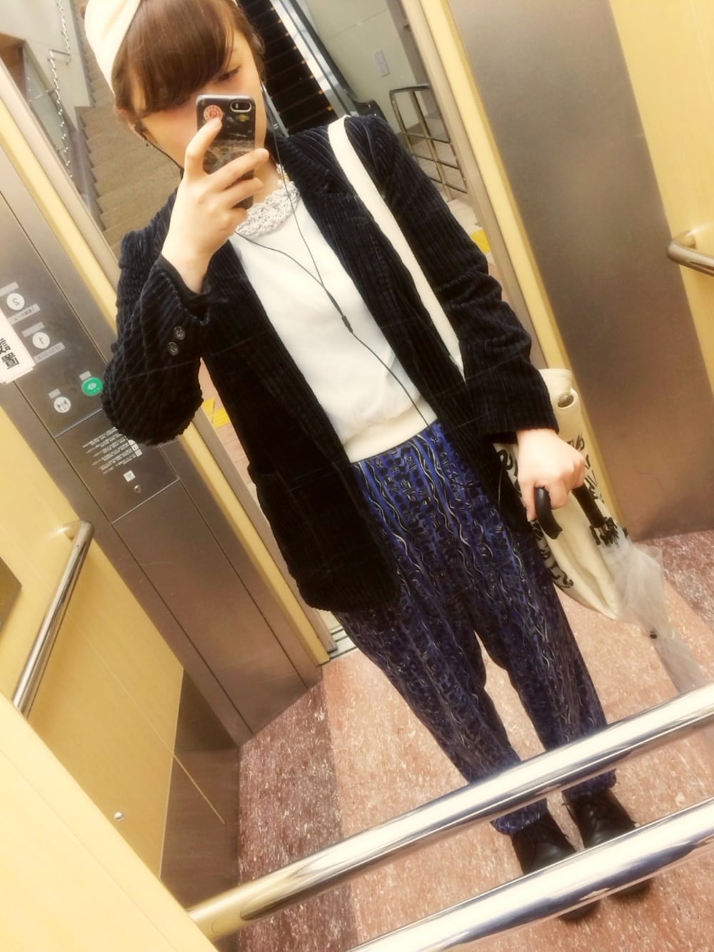 FUKULOGから移ってきて初のコーデ。 なんかややこしい、、笑 昨日は暖かかったので春っぽい感じです ジャケットが少しかっちりしてるのでパジャマパンツで崩してみました 家では暑かったから髪の毛アップにしたら帰り寒くて震えた。笑