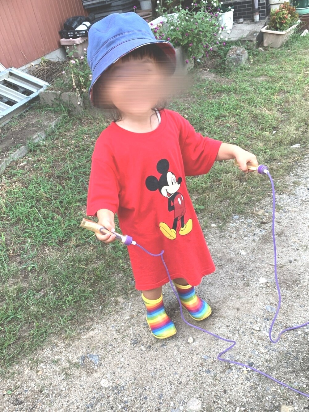 お外遊びコーデ⚐⚑ オーバーサイズのTシャツで◡̈⃝ ほんとは母のサイズミス! 間違えて130買ってしまった 「ワンピースじゃん!」 と気にいってくれたのでよし⸝⸝꙳