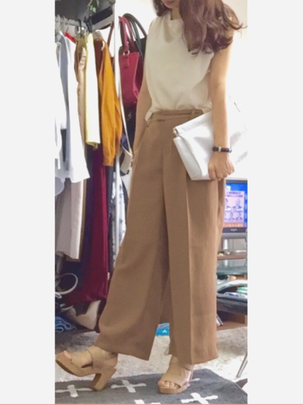 GU多めですね。笑 ボトムスはクロップドパンツなんですが、私の身長だとなんだかワイドパンツっぽくなってくれます(=´∀`)人(´∀`=)