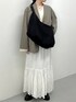 トレンドのメッシュ生地を使用したショルダーバッグ👜 大容量サイズでお出掛けや旅行にもピッタリのサイズ感。デザイン性のある形状でカジュアルになり過ぎず、幅広いテイストのコーディネートにおすすめ✨ 甘い印象のスカートですが、オーバーデザインのジャケットやTシャツなどと合わせ古着風に来ていただくのもおすすめです!