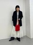 hun RODE SKO Tullle Setを主役にコーディネートを組んでみました✨ 赤色が目を引くバッグは、メッシュ素材ですが中に巾着があるため荷物の中が見える心配もなく安心◎ マチがあるのでポーチやお財布などお出掛けに必要な荷物の収納が可能です! ワントーンのコーディネートに差し色として合わせていただくのもおすすめですよ✨👜