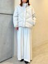 フードが取り外しできる2WAYのダウンジャケット。 フードを外して着用してます! 裾についているコードを搾るとよりすっきり着ていただけます🙆♀️ オススメのダウンジャケットです。 中に着てるレイヤードニットは着回し力が抜群のアイテム。ニット、ビスチェをそれぞれ他のアイテムと合わせるのも◎