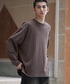 カジュアルなブラウンTシャツとデニムジャケットにきれいめスラックスを合わせたコーデ