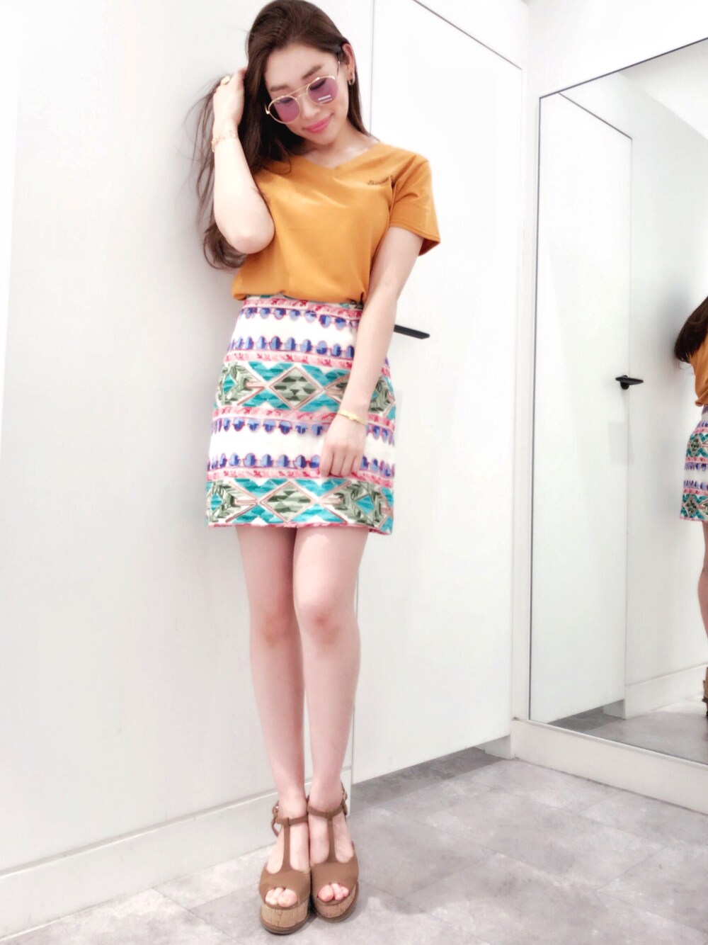 フェスに行きたくなるようなコーディネート❤️💛💚 夏はカジュアル・アクティブに楽しみたいですね🏝🌈 サンセットカラーのTシャツも、カラフルな刺繍も着るだけでとってもhappyな気分です😋❤️🌈