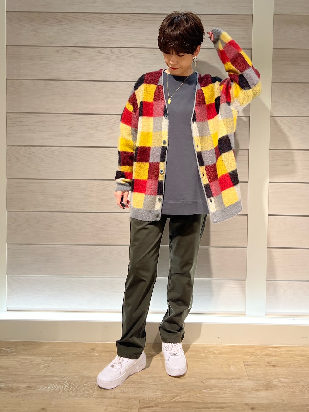 TOTO_fredy(FREDY&GLOSTER モザイクモール港北店)のカーディガン/ボレロ「【GLOSTER/グロスター】モヘヤミックスカーディガン グラデーション/レオパード/フラッグチェック/アーガイル」を使ったコーディネート