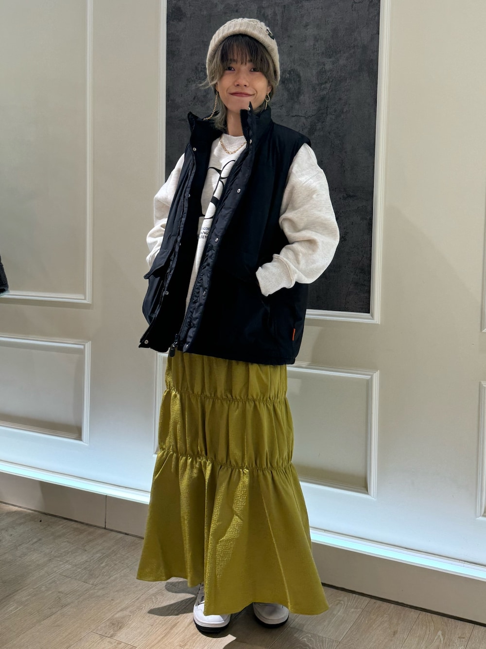 TOTO_fredy(FREDY&GLOSTER モザイクモール港北店)のベスト「【UNIVERSAL OVERALL/ユニバーサルオーバーオール】PADDING VEST パディングベスト」を使ったコーディネート