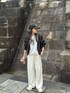 シアーダンボールはワンサイズでとろみのパンツは38サイズ着用しています! どちらも着てないような軽さで、色んなシーンでお使いいただけます!!