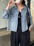 デニムシャツ再入荷です! ワンサイズで色は2色展開! 丈は腰ぐらいの位置でフレアのスカートやワイドパンツと履いていただいても、スッキリなシルエットになります!