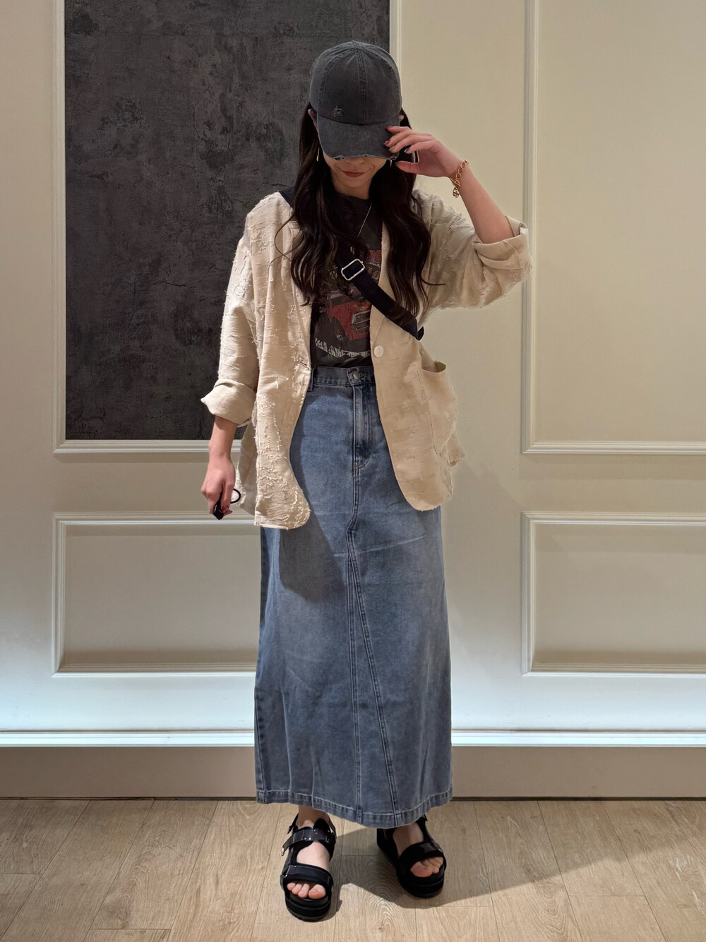 TOTO_fredy(FREDY&GLOSTER モザイクモール港北店)のデニムスカート「デニムロングスカート」を使ったコーディネート