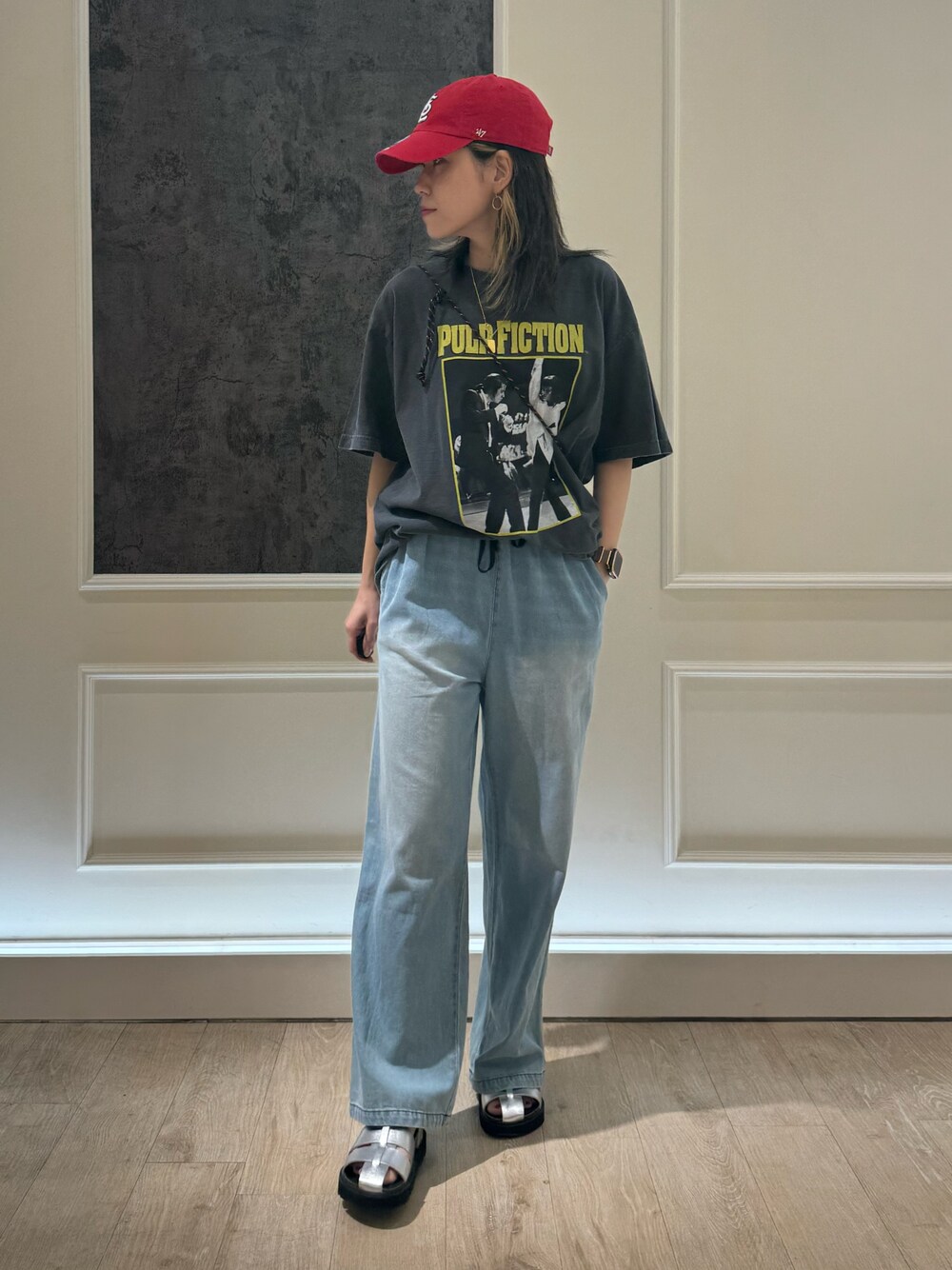 ○ライトオンスデニムイージーパンツ ゆったりシルエットのイージーパンツ! ウエストゴムのタイプで紐もついてるので調節可能◎薄手の生地なので夏も涼しく過ごせます! ○PULP FICTION Tシャツ M,Lサイズ展開。 かなりオーバーサイズなのでヒップ周りが隠れる長さになります! オーバーサイズで着たい方におすすめです!