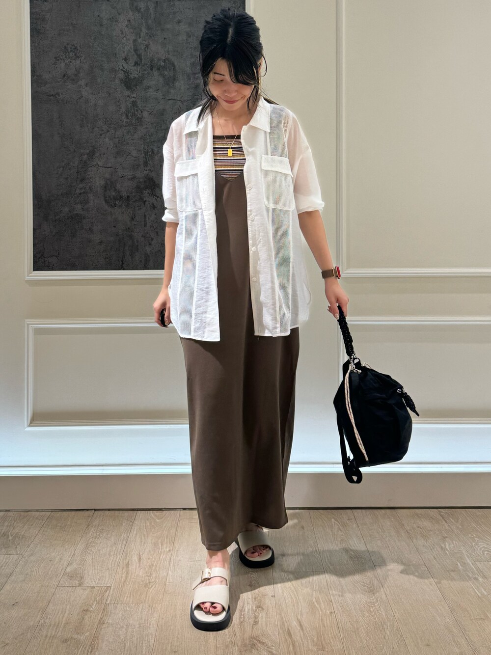 TOTO_fredy(FREDY&GLOSTER モザイクモール港北店)のワンピース「カットジョーゼットキャミワンピース」を使ったコーディネート