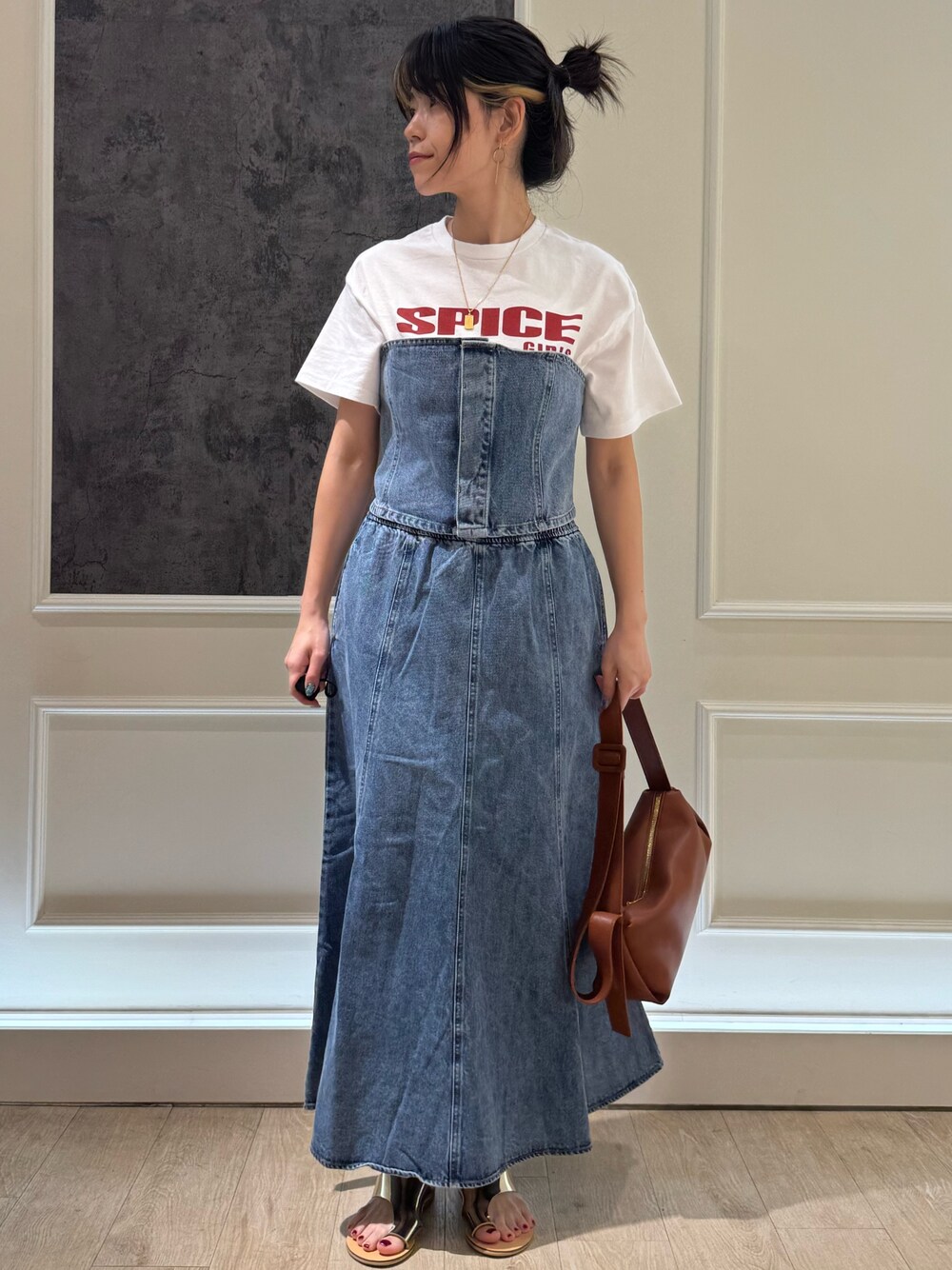 ○デニムスカート サイズはワンサイズ! ウエストがゴムになっていて調整可能。 お好みの長さに出来ます! ○デニムビスチェ ワンサイズで、止める部分はボタンになっています!