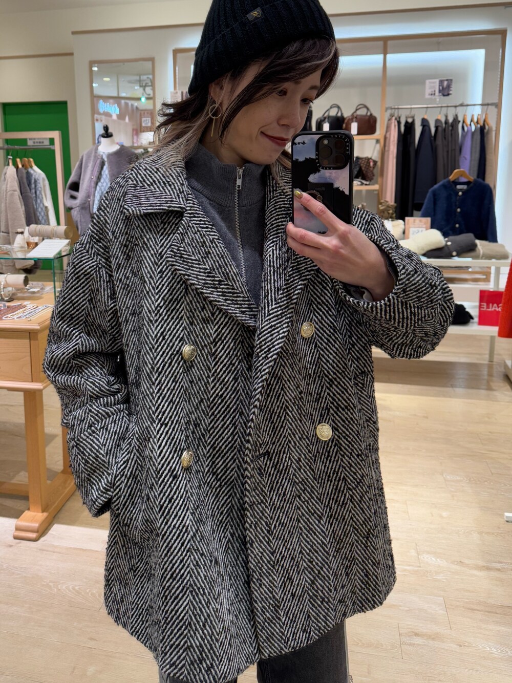 TOTO_fredy(FREDY&GLOSTER モザイクモール港北店)のピーコート「ツィードミドル丈Pコート」を使ったコーディネート