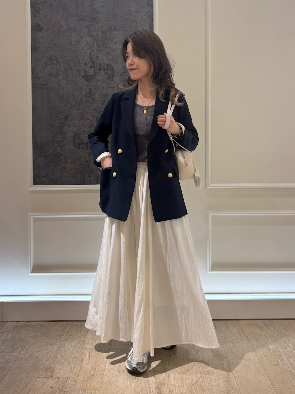 ダブルブレストジャケット 36,38サイズ展開の2色です! 36サイズ着用していますがスッキリしたシルエットで中に着込みたい方は38サイズがおすすめです!