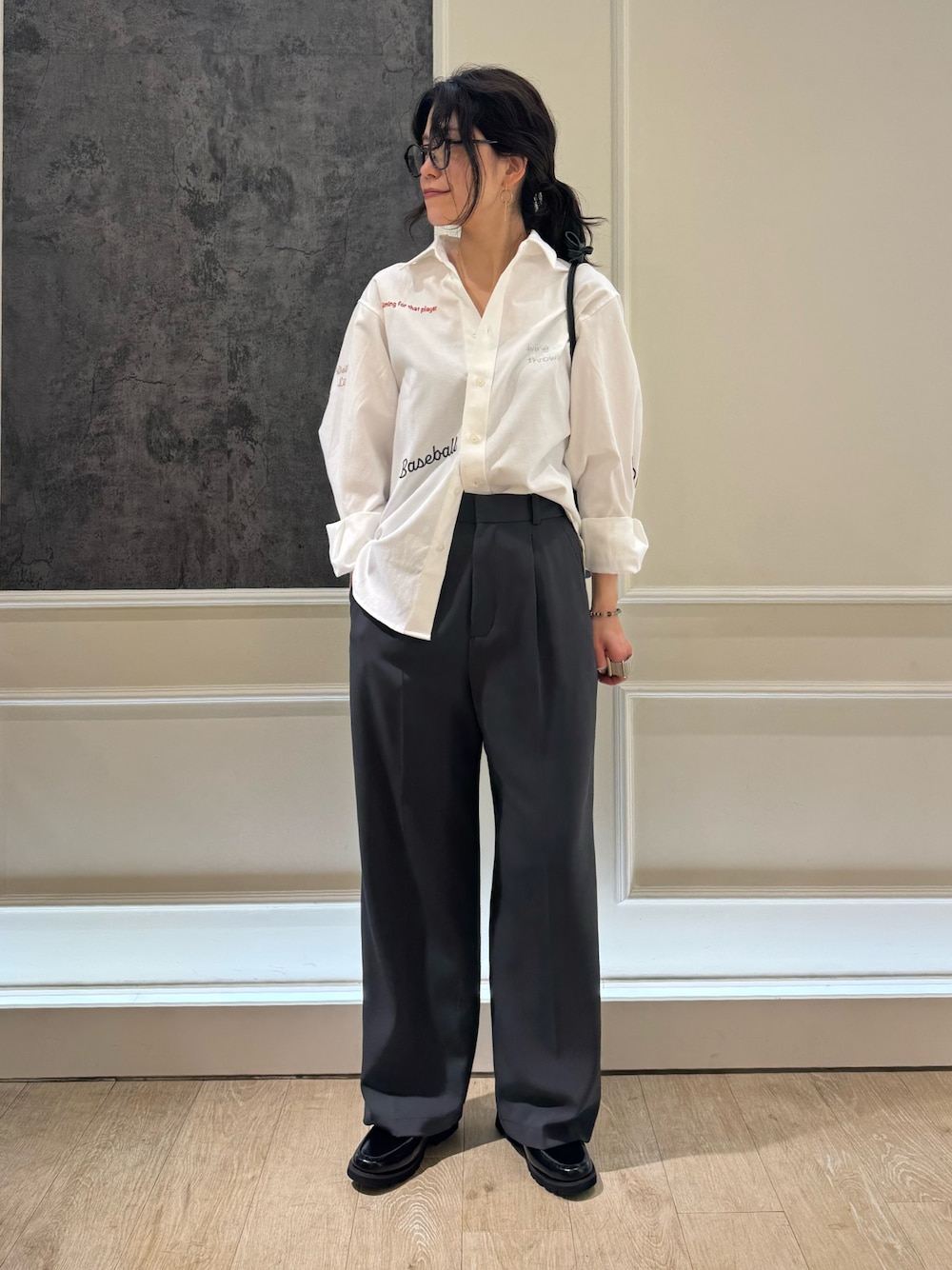 TOTO_fredy(FREDY&GLOSTER モザイクモール港北店)のシャツ/ブラウス「【GLOSTER】Messageシャツ オックスフォードシャツ レギュラーカラー(無地/ストライプ)」を使ったコーディネート
