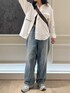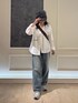 シャツ×デニムコーデ 春らしさを感じるシャツとデニムで組み合わせました!定番のコーデですが、シャツがMessageが刺繍されていてこなれ感のあるスタイルに◎