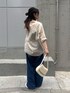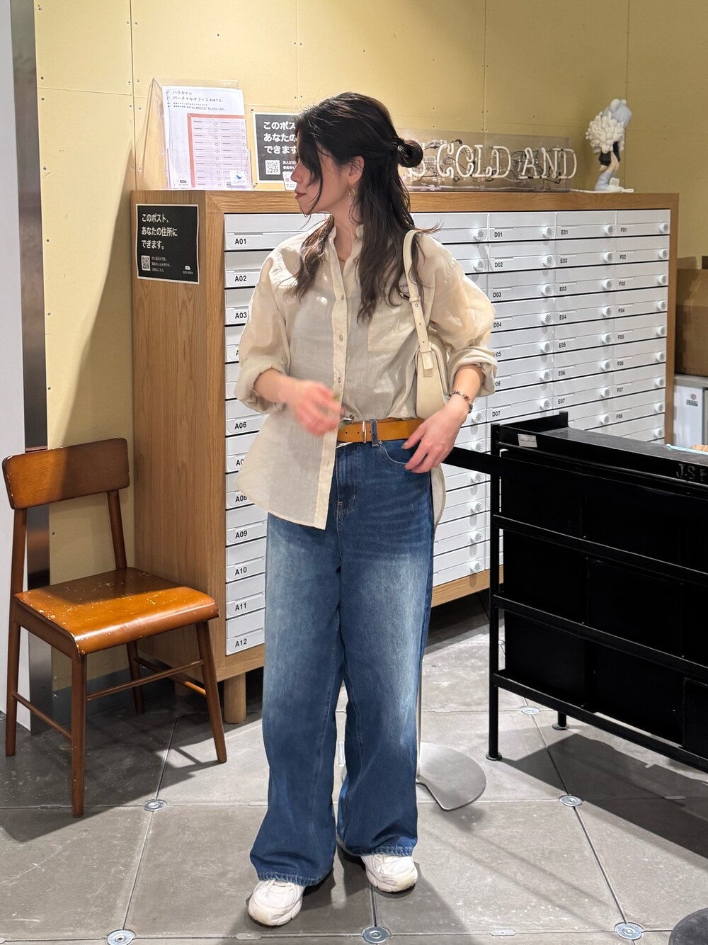 リネンシャツ×デニムパンツ リネンシャツはワンサイズで色展開豊富です! ゆったりしていて、透け感もそこまで気にならない薄さです! ボタンがポイントです👍