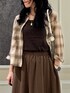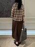 秋先取りコーデ🍂 シャツはワンサイズでかなりシアー感があるので、今の時期からでも着れます!! スカートは36,38サイズで、丈の長さがサイズで変わります! 164cmで38サイズがちょうどよく着れます!