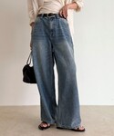 【シャツ】 ワンサイズ展開でカラー3色! ゆったりめですが、生地感は柔らかいのでストンと落ちる形になっていて、スッキリ感がでます! 【デニムパンツ】 36,38サイズ展開でウエストと形はゆったり、ベルトを通せばスッキリとしたシルエットに!