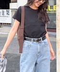 TOTO_fredy(FREDY&GLOSTER モザイクモール港北店)のTシャツ/カットソー「ボーダー/無地ワンポイントロゴコンパクトTシャツ」を使ったコーディネート