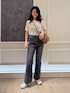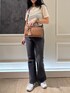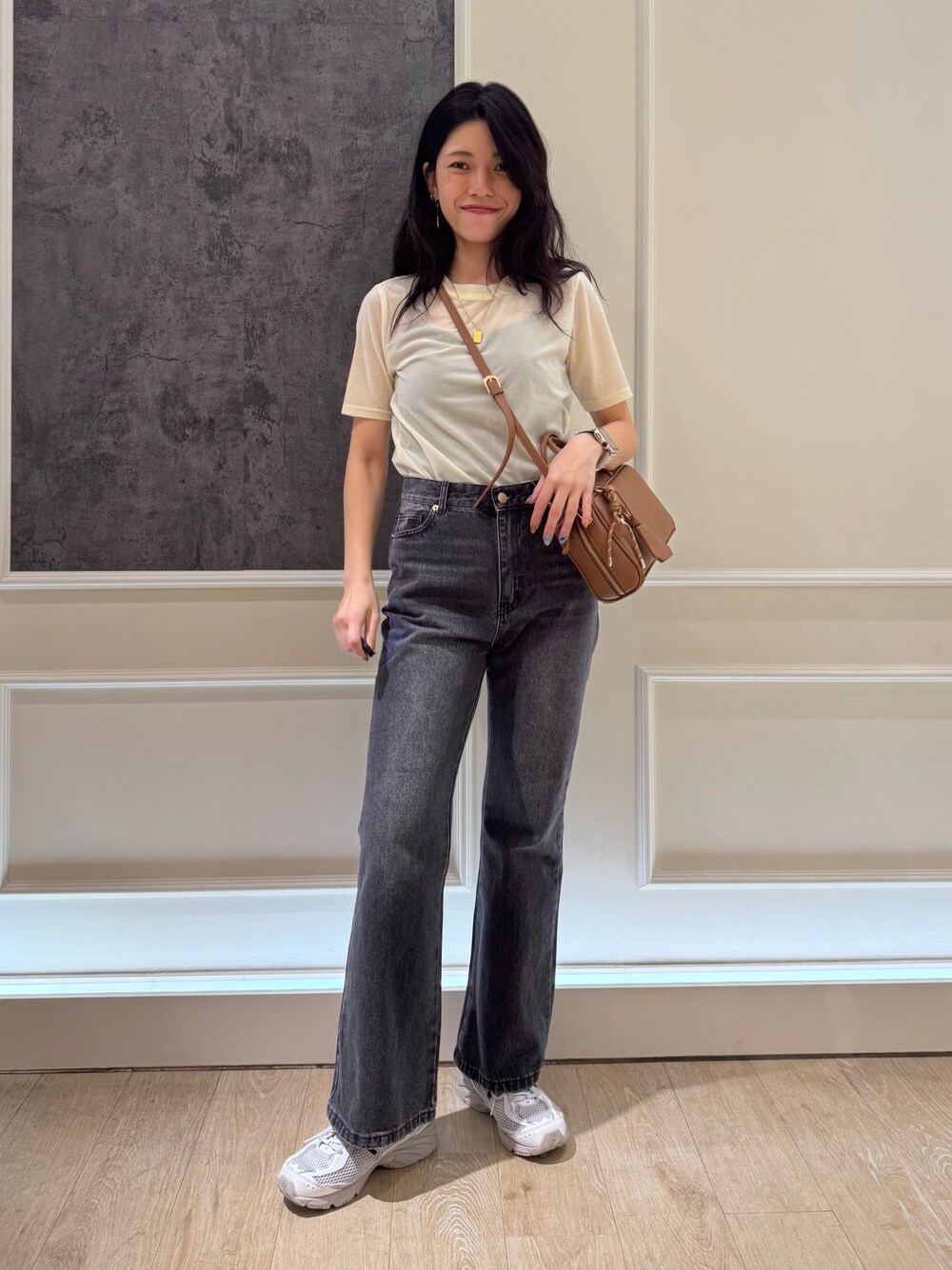 ベロアTシャツはワンサイズでデニムは36,38サイズ展開です! Tシャツは身幅はありますがインしてもかさばらずにスッキリと着られます! デニムはフレアのタイプですが太もも周りはスッキリでシルエットを綺麗に見せてくれます!