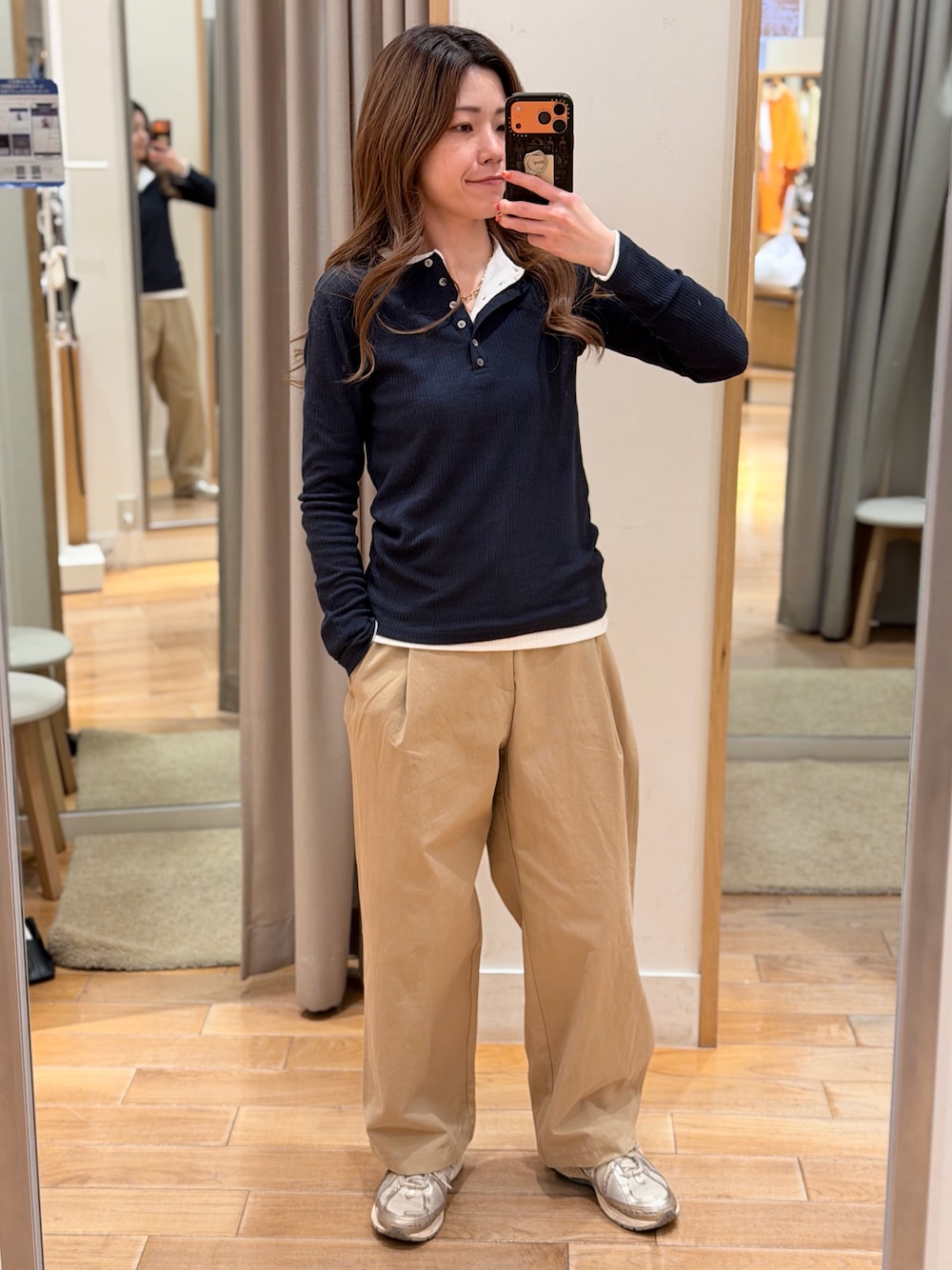 シアーテレコヘンリー トレンドのレイヤード✨ シアー素材でパリッとしたかさばらない生地感! デニムパンツと合わせて着ても◎