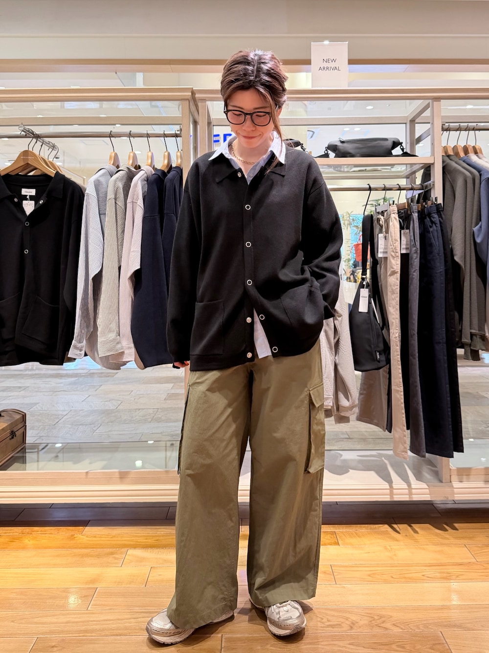 ポロニットコーデ🧶 メンズアイテムでS,M,Lサイズ展開! 身幅広めでゆったり着れます! スカートはどんな形でも合わせやすいです!