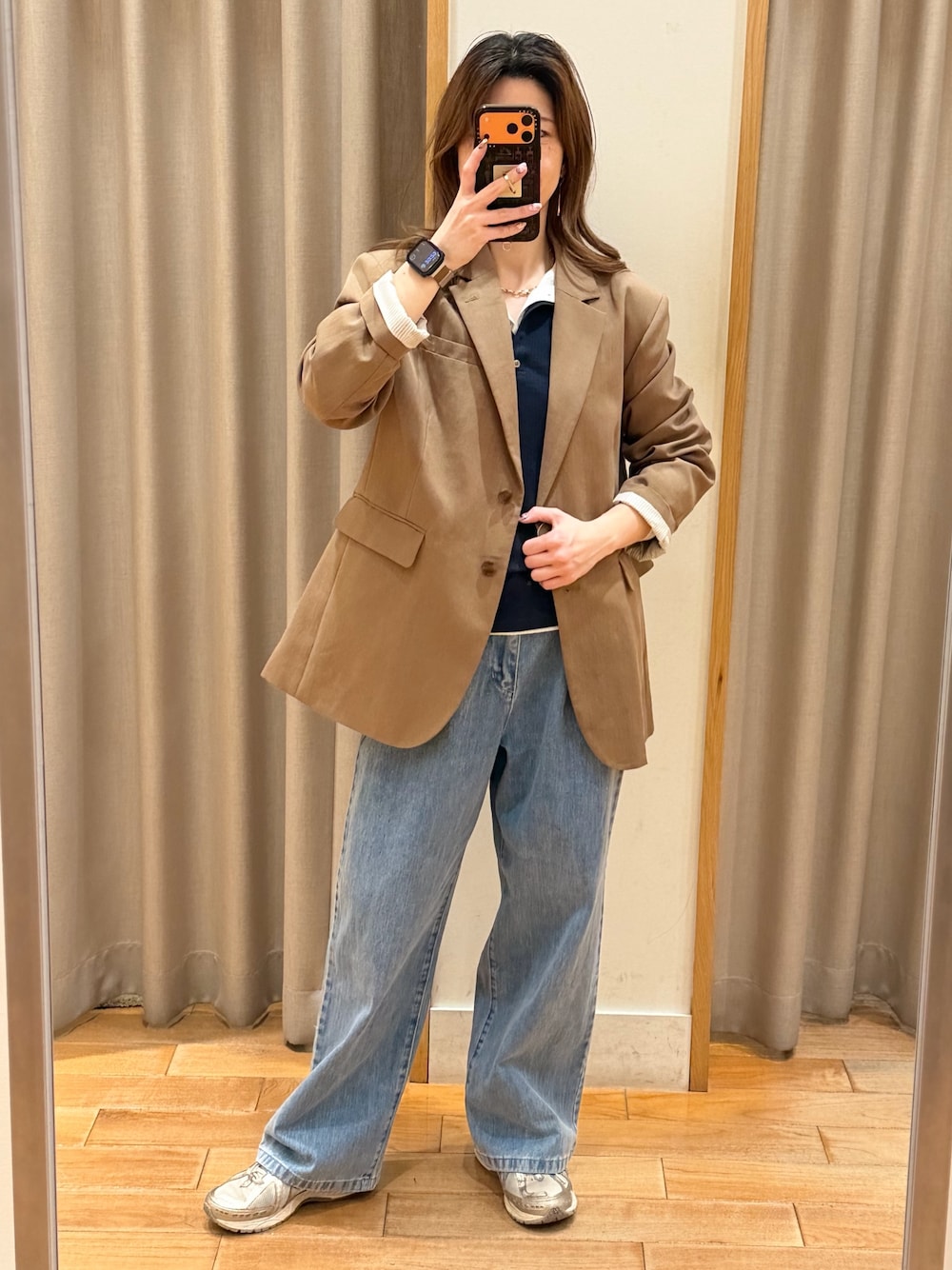 ジャケット×デニムパンツ 春の定番コーデ✨ ジャケットはワンサイズでオーバーサイズでゆったりめに着られます! デニムは36,38サイズ展開で幅が太めのタイプでたっぷり着れます!