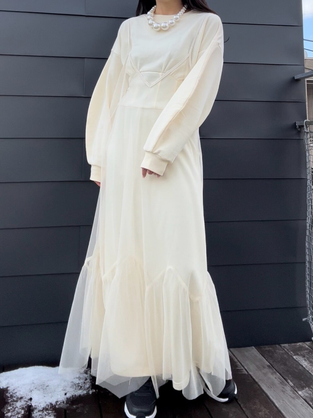 スウェットワンピース×チュールワンピがなんだかツボです👀 タイムセールやってるよ🤍