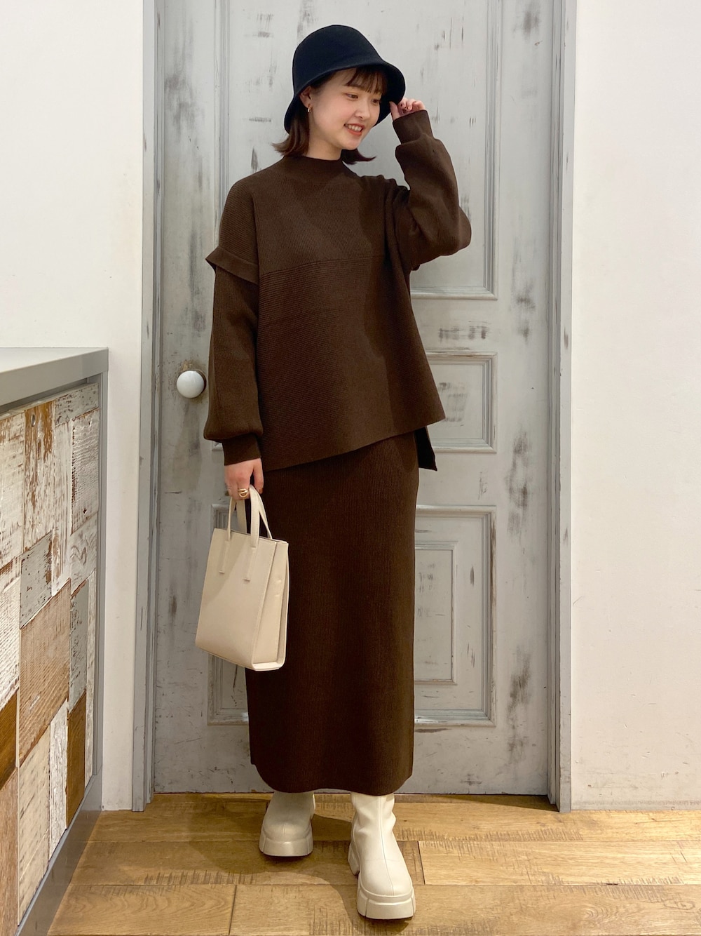 別々でも使えてセットアップにもなるニットワンピース Instagram:@164.0cc