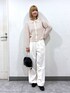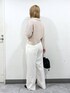 ⭐各アイテムのおすすめポイント  ̄ ̄ ̄ ̄ ̄ ̄ ̄ ̄ ̄ ̄ ̄ ̄ ̄ ̄ ̄ ̄ ̄ 【トップス】 大人可愛いポロニット! 透かし編みなので涼しく着用できます🙆♀️ トップスとして着たり、ボタンを開けて羽織りとしても使用できるので着回しが効きます✨ 【ボトムス】 シャーリングのインナー付きワイドパンツ! 深めのタックが入っているので形がスラッとしていて綺麗です✨ ウエスト、腰回りにゆとりがあるので骨格ウェーブの方も着やすいデザインになっています!