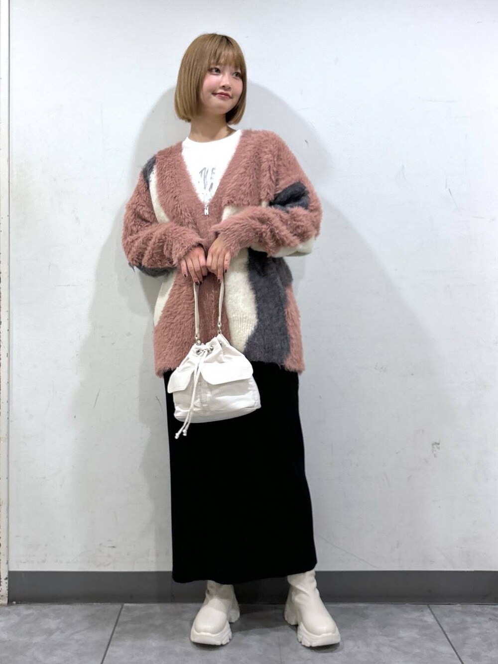 ⭐各アイテムのおすすめポイント  ̄ ̄ ̄ ̄ ̄ ̄ ̄ ̄ ̄ ̄ ̄ ̄ ̄ ̄ ̄ ̄ ̄ 【トップス】 パッチワーク風のデザインがお洒落なシャギーカーディガン! 適度に厚みがありながらもチクチク感があまりなく、着心地が良いです🙆♀️ ビックシルエットなので気になる腰、お尻渡邊周りを隠してくれます✨ 【トップス】 メタリックのロゴが可愛いロンTシャツ! 適度にゆとりがあるのでインでもアウトスタイルでも着用できます✨ ベーシックなアイテムなのでボトムスは迷わず合わせて頂けます🙆♀️ 【ボトムス】 ベーシックなデザインのタイトスカート! さ10cmまでセルフカット可能でマシンウォッシャブルなのでお洗濯も可能です✨ ウエストがゴムなので動きやすく履きやすいです🙆♀️