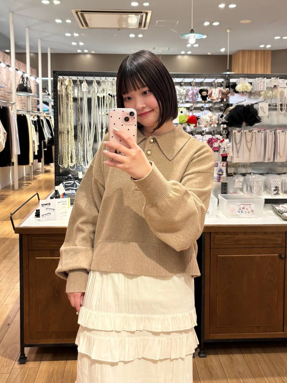 ⭐各アイテムのおすすめポイント  ̄ ̄ ̄ ̄ ̄ ̄ ̄ ̄ ̄ ̄ ̄ ̄ ̄ ̄ ̄ ̄ ̄ 【トップス】 トレンドライクなニットポロ衿プルオーバー! 衿を大きめにしてボタンも大きめで可愛らしく小顔効果も抜群です✨ 肌触りも良く着心地が良いです◎ 【ボトムス】 ティアードフリルデザインがかわいいスカート! 程よいフリル感なので甘くなりすぎず、普段着にも取り入れやすいデザインになっています◎ ウエストはオールゴム仕様で裏地付きなので安心です✨