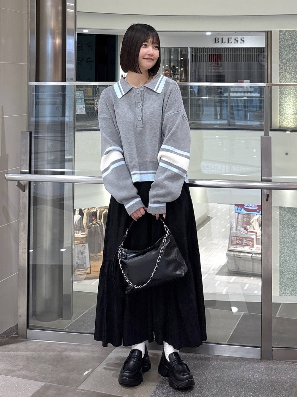 ⭐各アイテムのおすすめポイント  ̄ ̄ ̄ ̄ ̄ ̄ ̄ ̄ ̄ ̄ ̄ ̄ ̄ ̄ ̄ ̄ ̄ 【トップス】 トレンドのポロ衿のニットに配色を効かせたデザイン性のあるニットプルオーバー! スウェットのようなゆったりとしたシルエットなので着心地抜群です✨ 春のコーデの主役になること間違いなしです! 【ボトムス】 フレアシルエットのスカート! ボリュームがあるのですがスッキリとした印象になっています! 歩くたびふわっと揺れ、女性らしい華やかな雰囲気になります✨