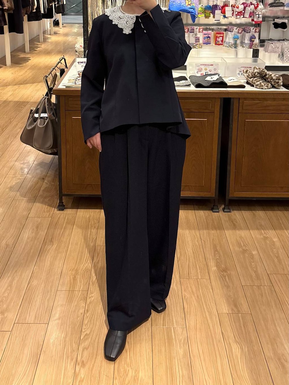 ⭐各アイテムのおすすめポイント  ̄ ̄ ̄ ̄ ̄ ̄ ̄ ̄ ̄ ̄ ̄ ̄ ̄ ̄ ̄ ̄ ̄ 【ジャケット】 取り外しのレース衿が付いたジャケット! レース衿を取ると、首元がすっきりと見えるノーカラージャケットになり綺麗です✨ ウエストから裾に広がるフレアシルエットで細身のパンツを合わせてもスッキリと着用して頂けます◎ 【ボトムス】 絶妙なワイドストレートシルエットなパンツ! リラックス感がありながら、上品な印象で着用できます✨ ウエスト後ろはゴムデザインで窮屈感なくラクチンな穿き心地も嬉しいポイントです!
