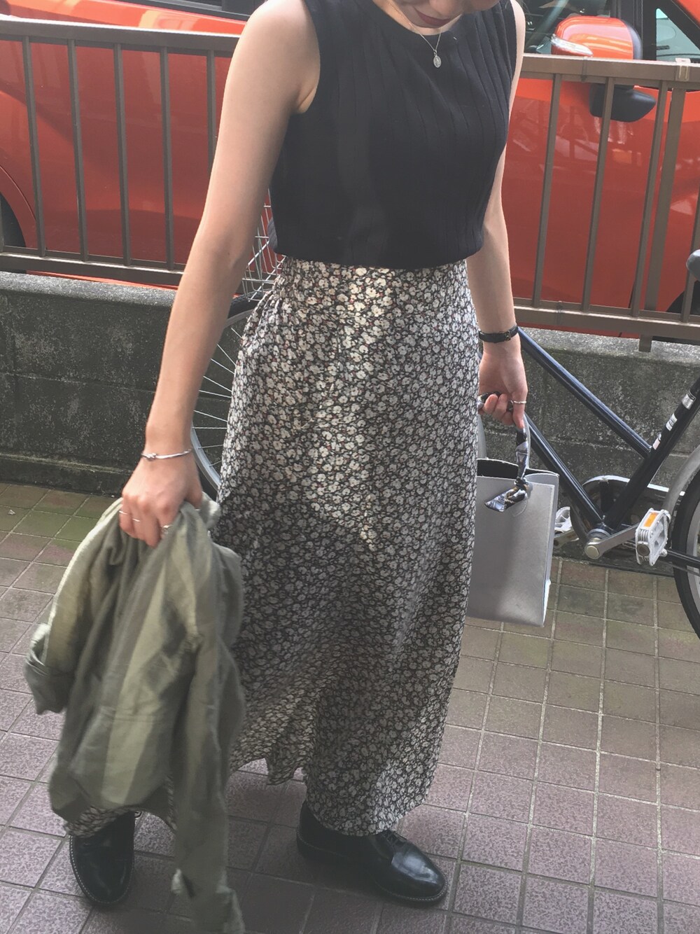 今頃に3月に買ったリネンシャツが再度活躍🙆♀️ もう秋ですねは、足元から👞 女子会用の花柄ちゃん