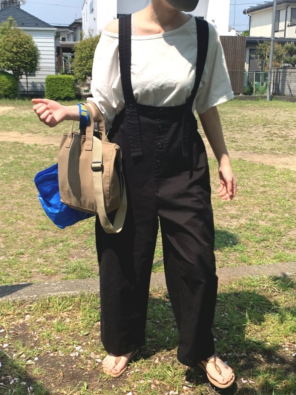 お出かけが食料品の買い出しくらいだから、ほぼほぼ楽ちんサロペット に頼りっきり〜🙏