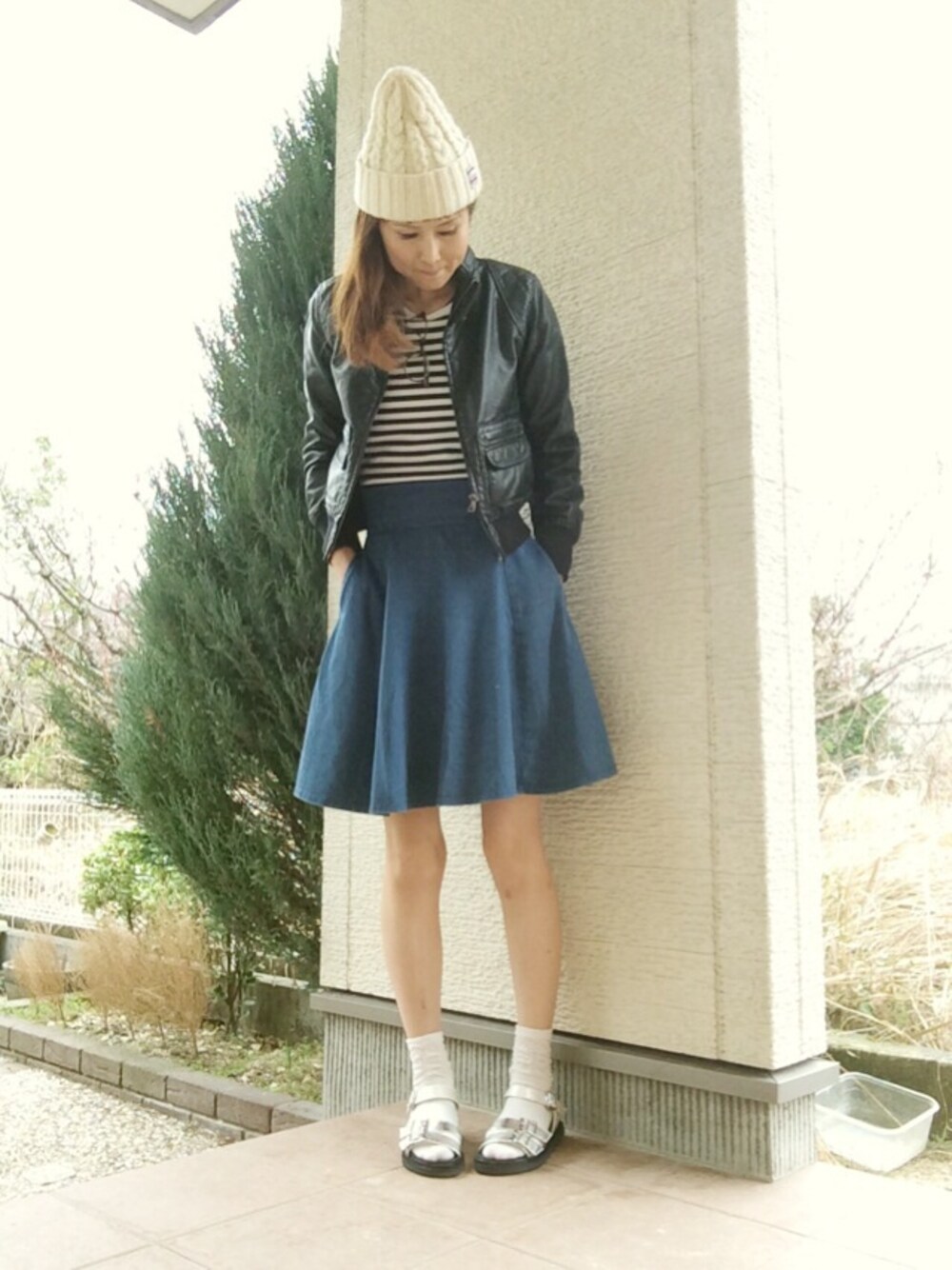 靴下×サンダルのスカートバージョン♫ ボーダーニットは昨日のタグだよね(ーー;)とか思いながらチョイス… 爽やか甘辛ミックス‼︎ で、どうでしょう〜〜(๑✧◡✧๑)