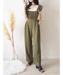 🔍トップス 今回着用サイズF 普段着用サイズM 【着用感】 袖のフリルが特徴的なトップスです!そこまでフリルが大きくないので可愛くなりすぎまけん。何にでも会います☺️ 🔍サロペット 今回着用サイズF 普段着用サイズM 【着用感】 肩のフリルがポイントになっている可愛いサロペットパンツです!サラッと着れるのと、シワになりにくいのでお手入れもしやすいアイテムになってます!両サイドにポケットも付いています!