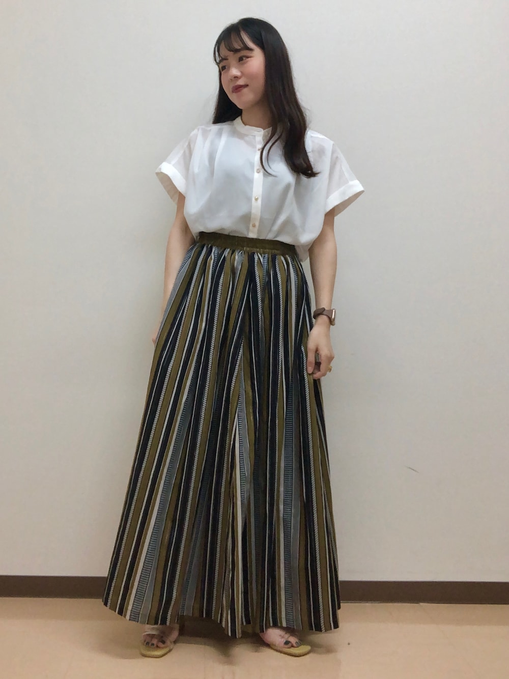 ◯トップス 今回着用サイズF 普段着用サイズM 【着用感】 ブラウスです!ノースリーブではないので気になる二の腕も少し隠れるデザインになっています!とても可愛いです◎ ◯スカート 今回着用サイズF 普段着用サイズM 【着用感】 ストライプ柄のスカートです!カラー展開も豊富でカジュアルに着て頂けます!おススメです!