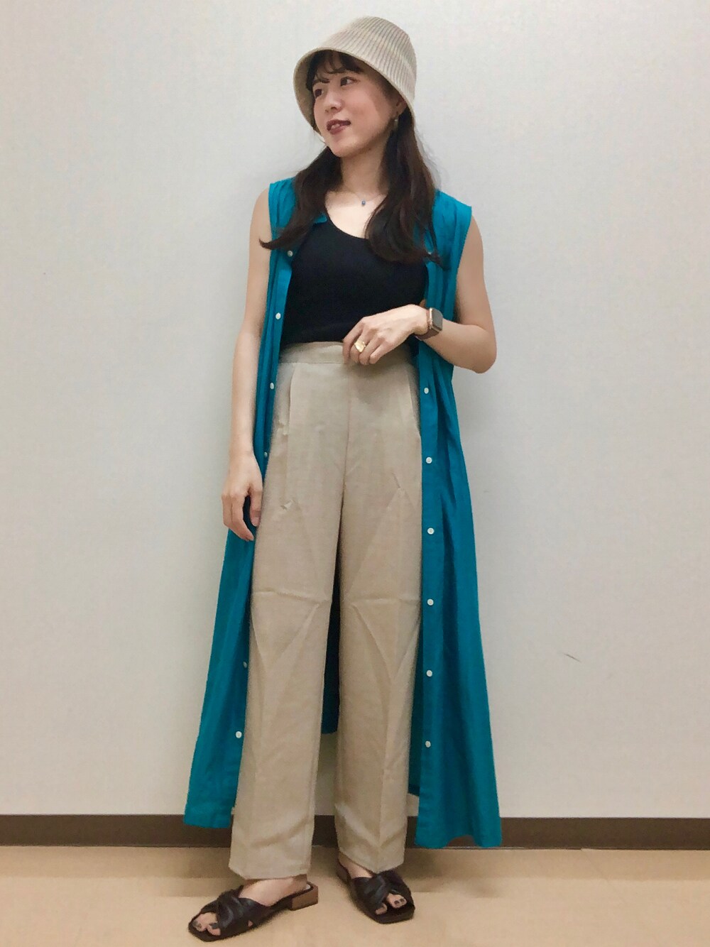 ◯ワンピース 今回着用サイズF 普段着用サイズM 【着用感】 ワンピースですがボタンを開けて羽織としても使えます!色味がとっても可愛いです。青色は清涼感もありこれからの季節にぴったりです! ◯パンツ 今回着用サイズF 普段着用サイズM 【着用感】 接触冷感素材を使用したパンツです!ストレートパンツで、センタープレスで脚長効果もあります◎おススメです!