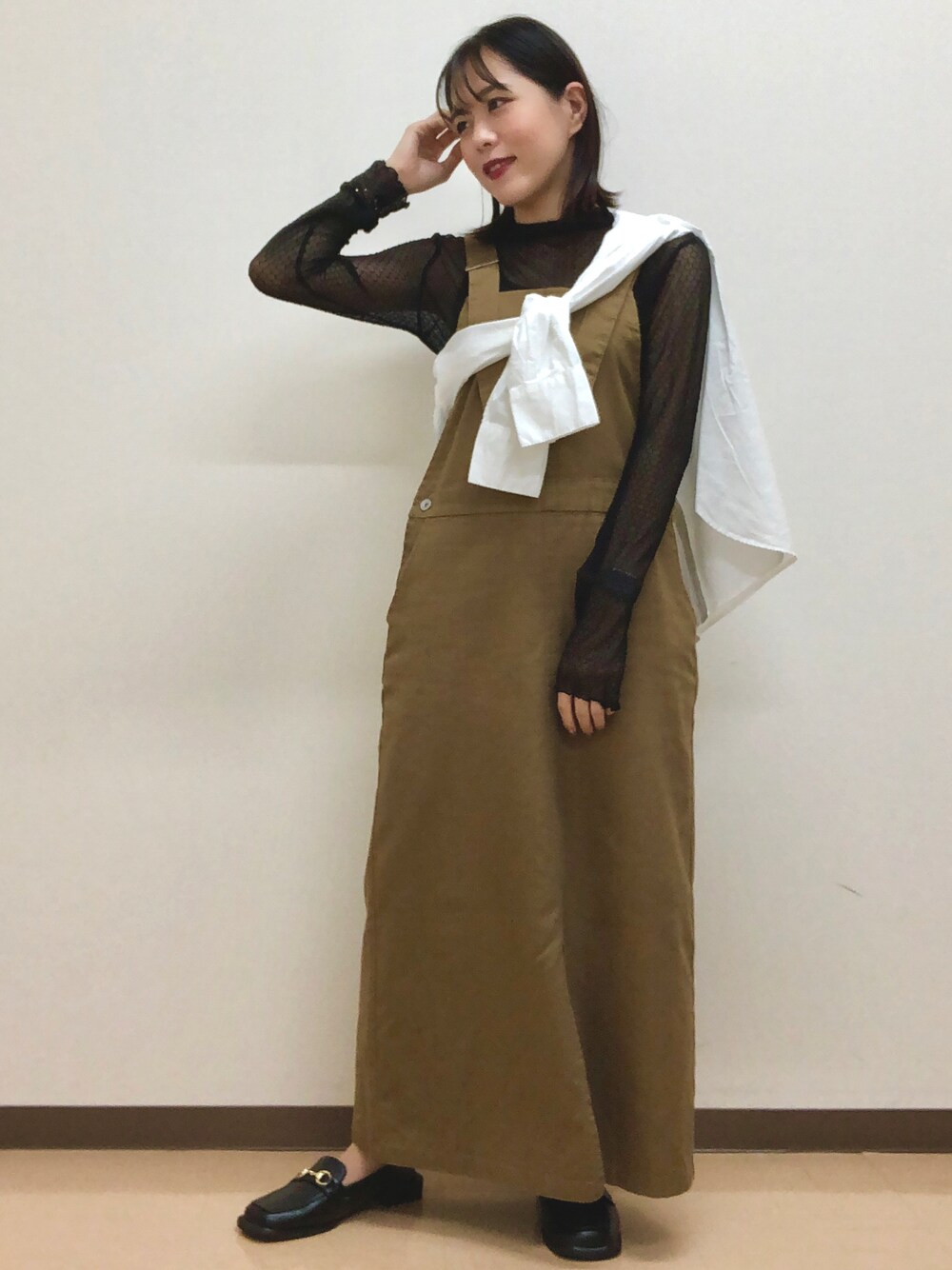 ◯シアートップス 今回着用サイズF 普段着用サイズM 【着用感】 アースのシアートップスです。レイヤードにぴったりの一枚です!一枚持っていればこれからの季節に大活躍です◎ ◯サロペット 今回着用サイズF 普段着用サイズM 【着用感】 フロントのスリットがキレイめスタイルを演出するジャンパースカートです!肩紐の部分は調節できるので、お好きな長さに変えられます!